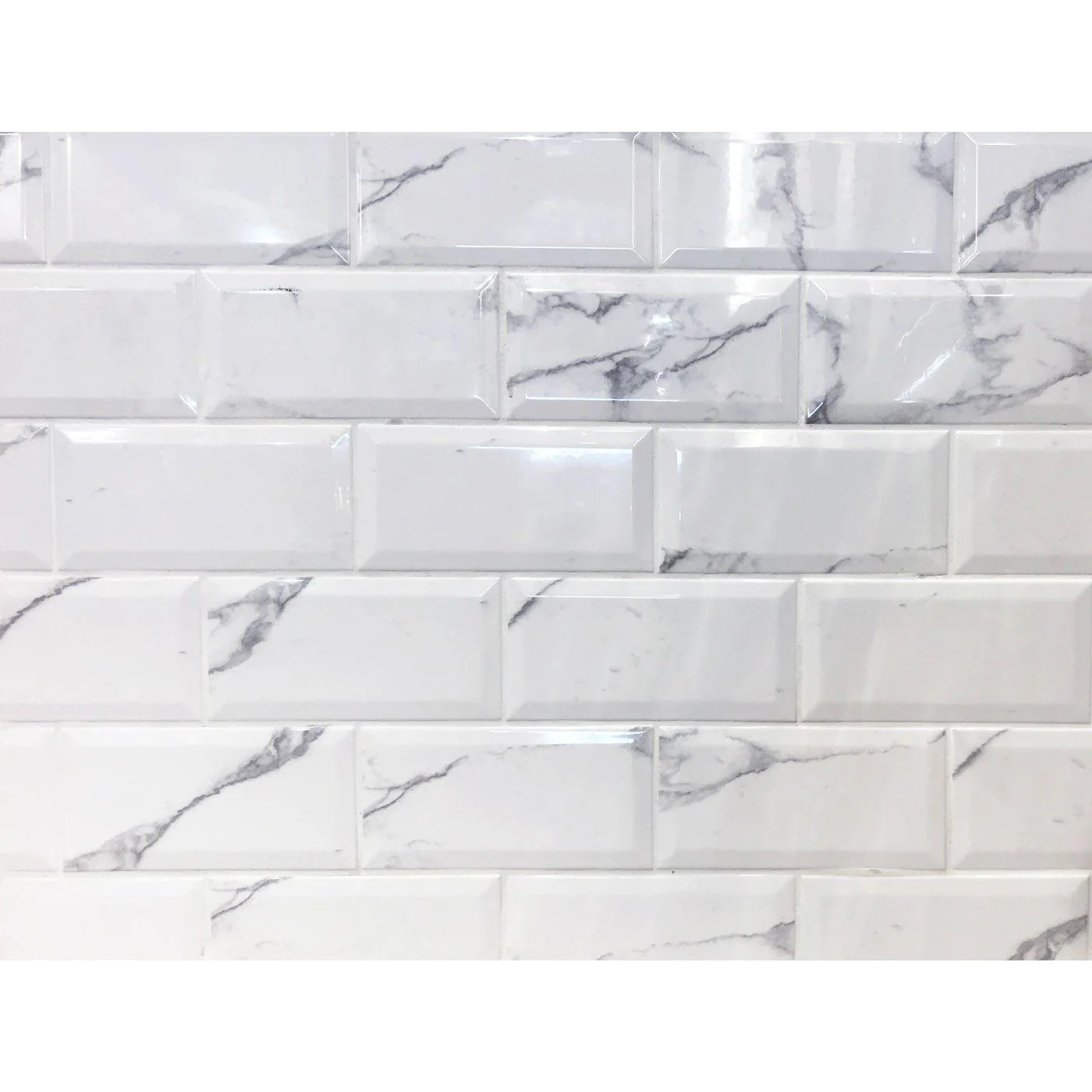 Metro Carrara White Bevelled Brick wall tile 10x20cm