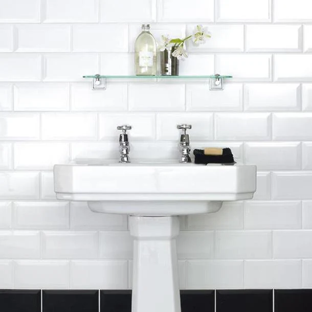 Ceramic bevelled-edge wall tile with a white gloss finish.